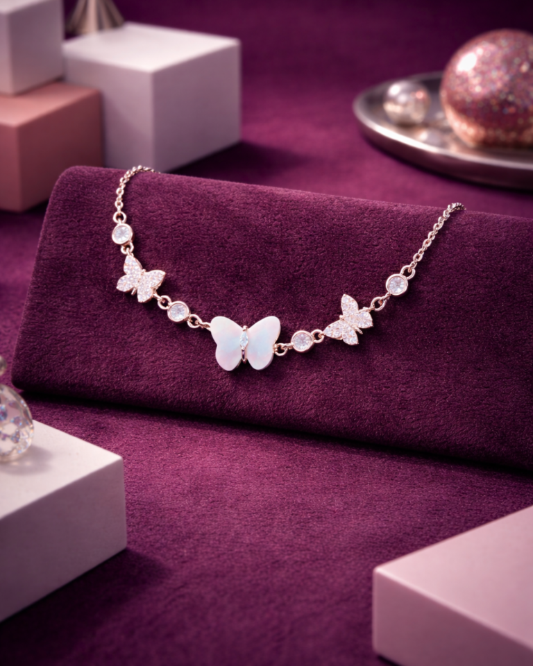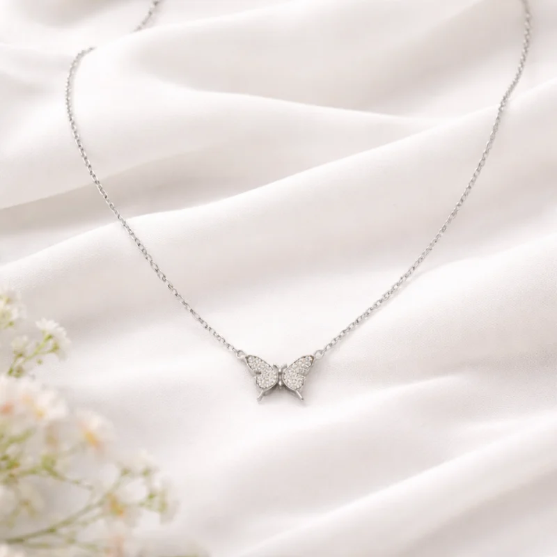 Sparkling Butterfly Pendant Necklace in 92.5 Sterling Silver For Women