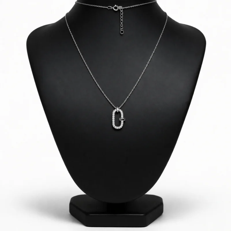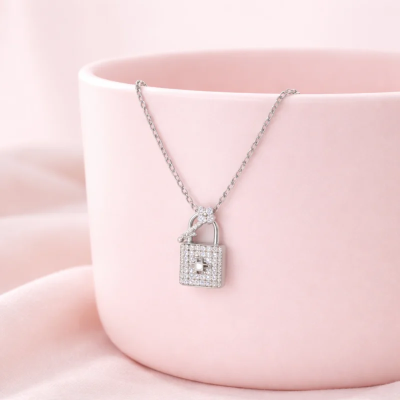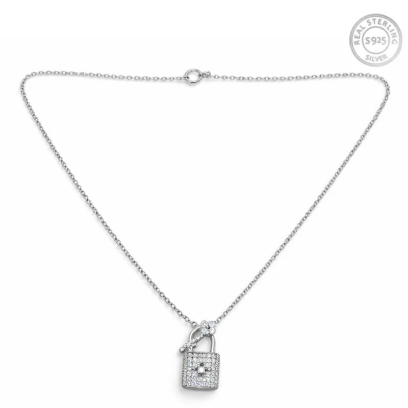 Crystal Lock & Key Pendant Necklace for Women 92.5 Silver