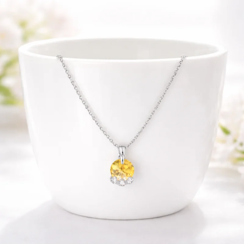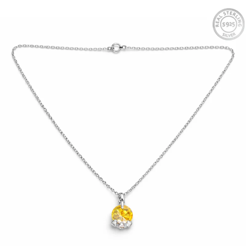 Golden Crystal Drop Pendant Necklace for Women 92.5 Silver