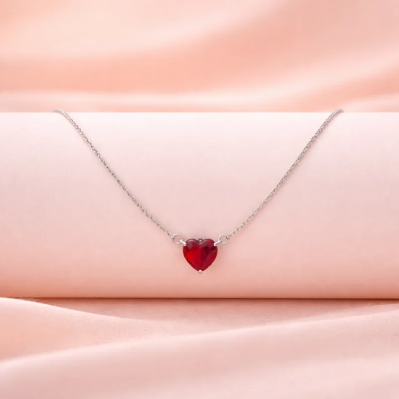 Red Heart Crystal Pendant Necklace for Women – 92.5 Silver