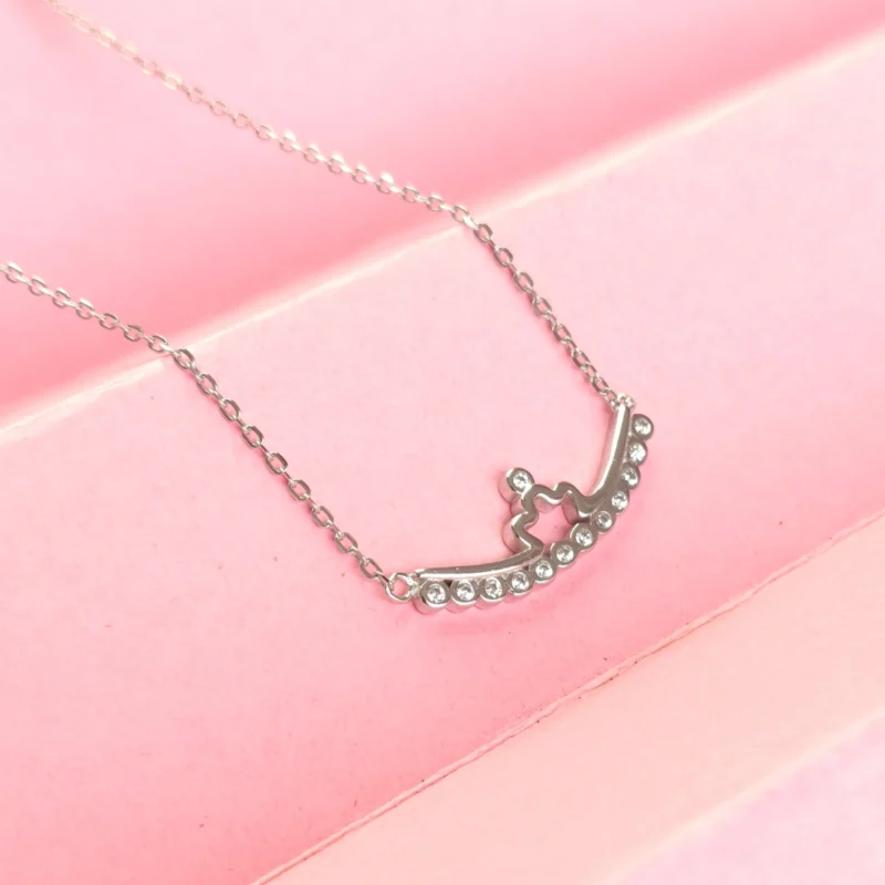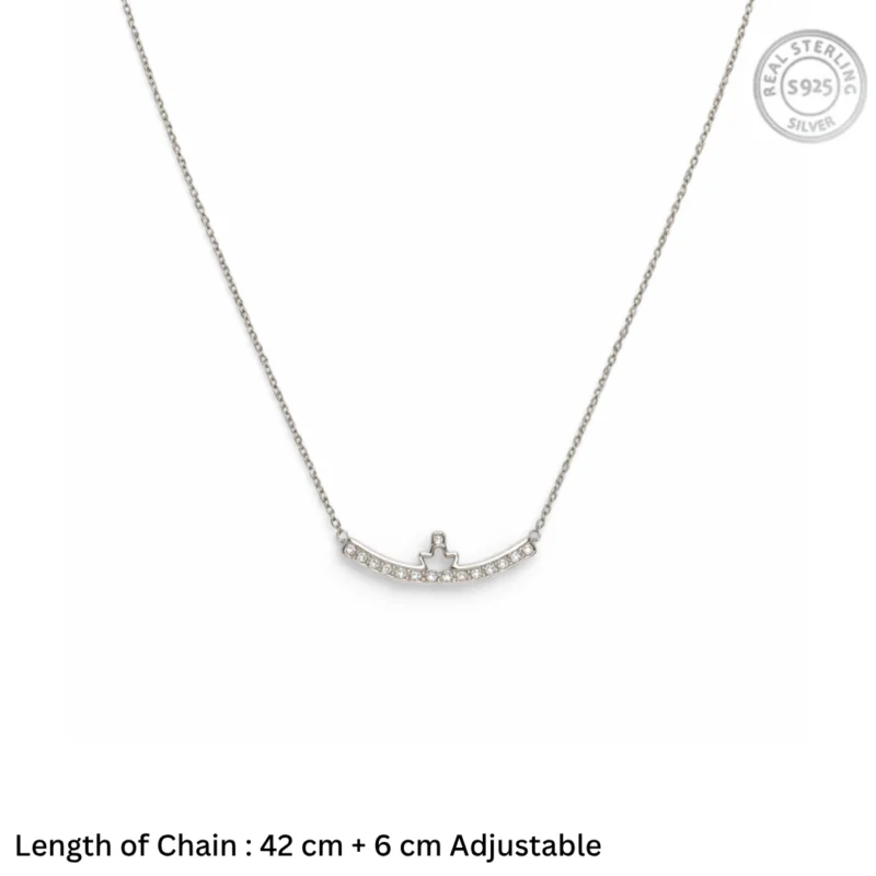 Silver Sparkling Crown Curved Bar Necklace 92.5 Sterling Silver for Women