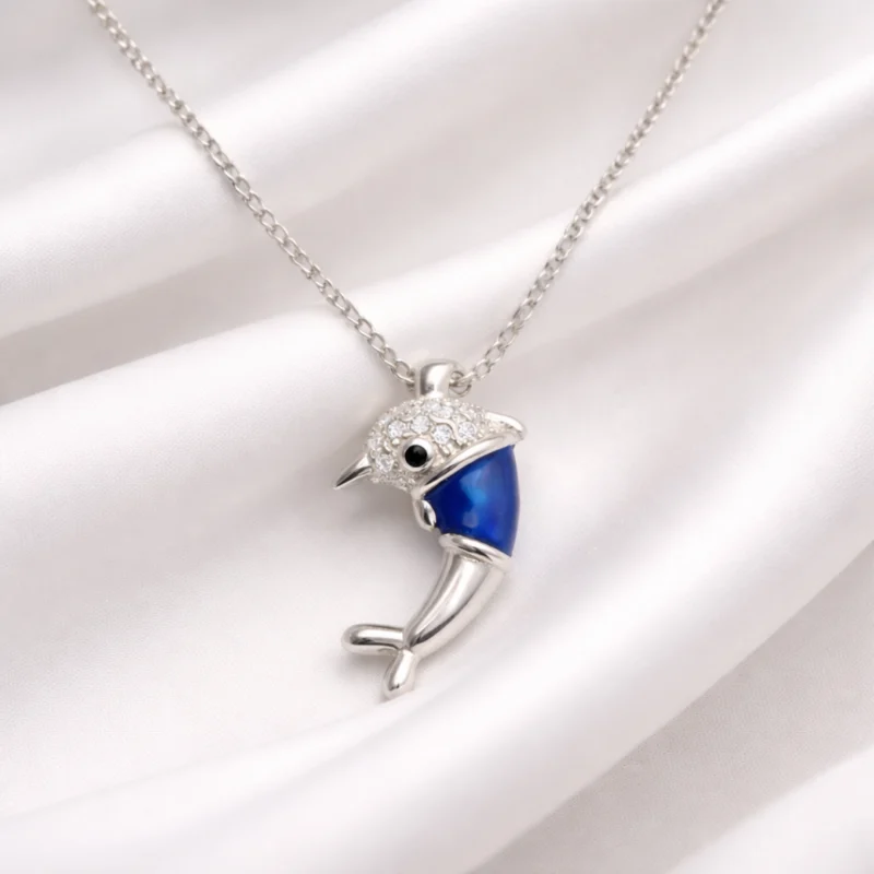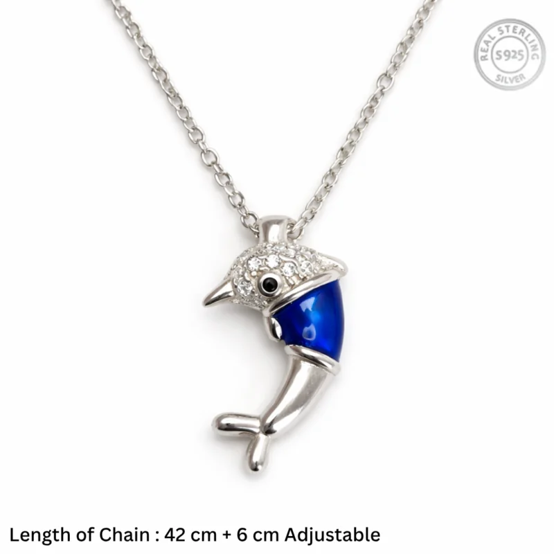 Dolphin Pendant Necklace 92.5 Sterling Silver Blue Stone for Women
