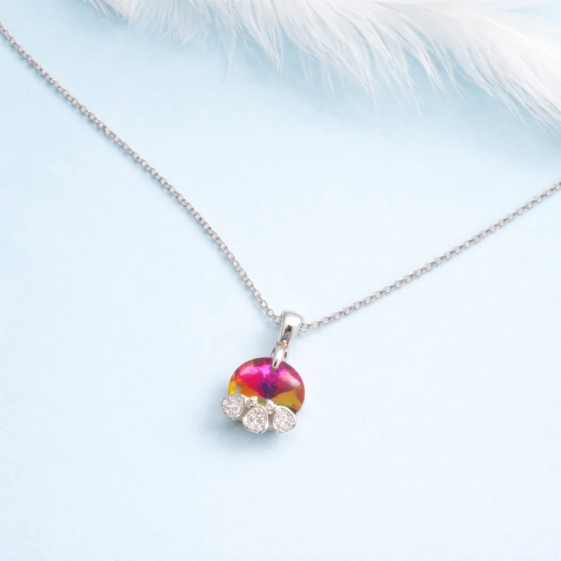 Multicolor Aurora Crystal Silver Pendant Necklace for Women