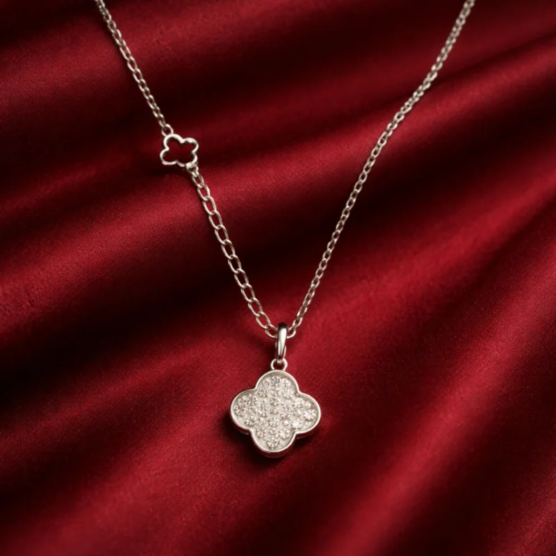 Sparkling 92.5 Silver Clover Pendant For Women
