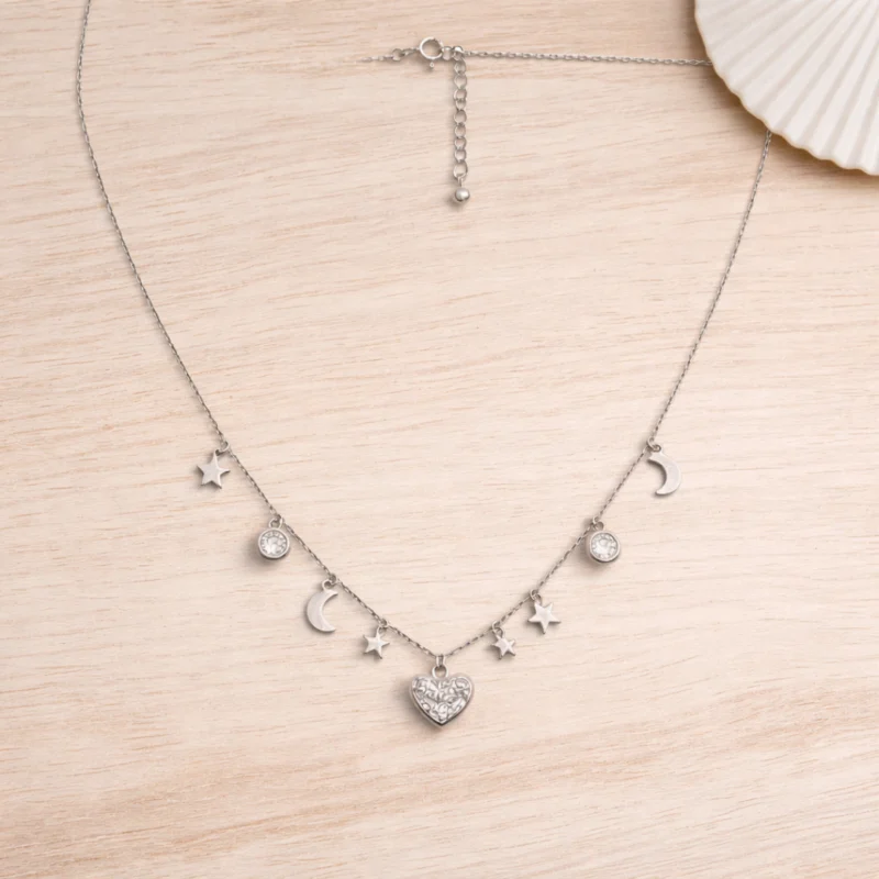 Blush Pink Crystal Heart Pendant Necklace – 92.5 Sterling Silver Romantic Love Charm with Sparkling Accents