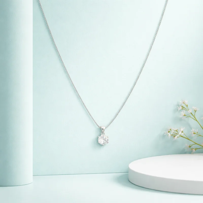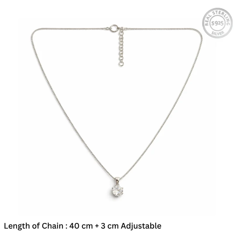 Classic Brilliant-Cut Solitaire Necklace – 92.5 Sterling Silver Dainty Chain with Six-Prong Set Crystal Pendant