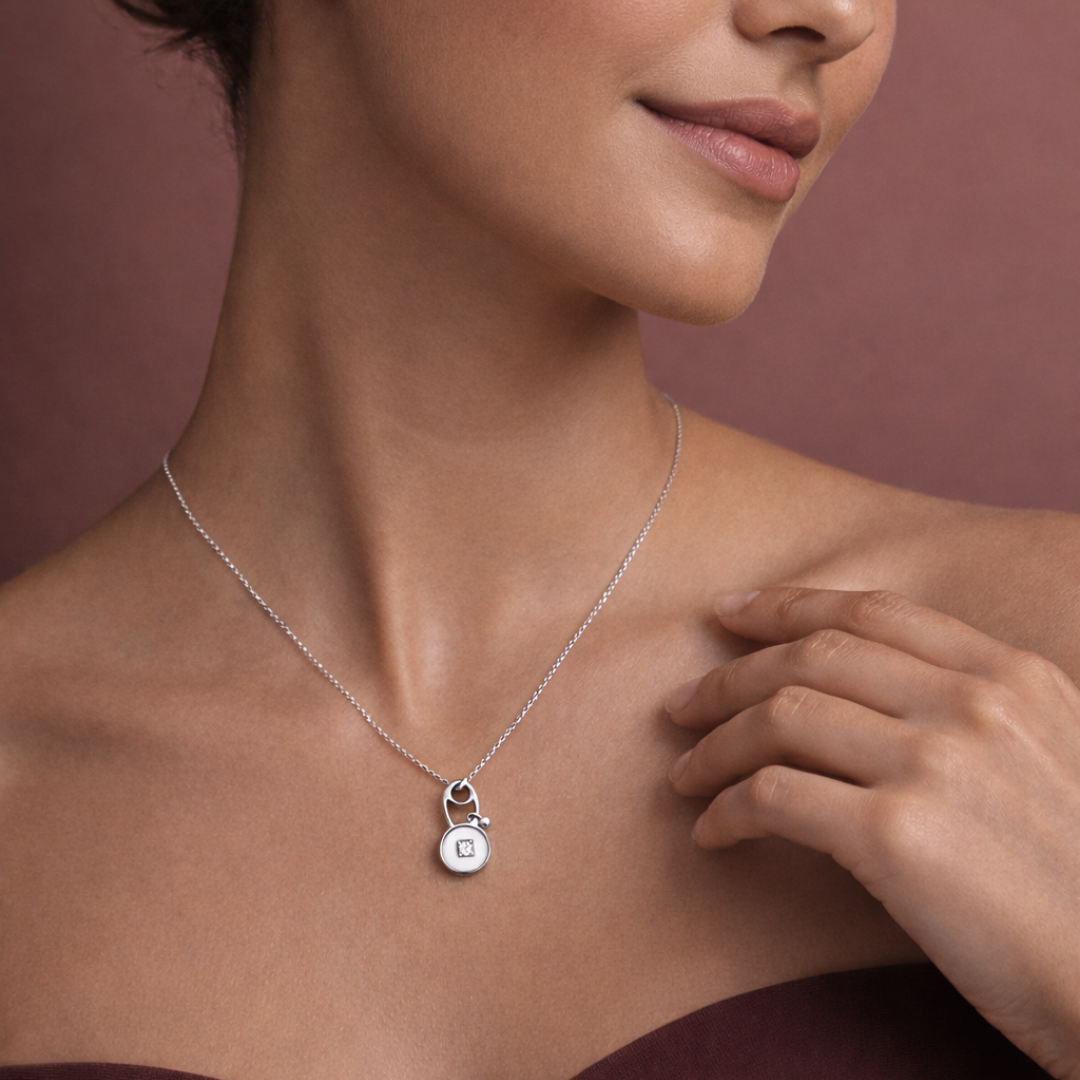 Crystal Lock & Key Pendant Necklace for Women 92.5 Silver ₹3,123.00 Original price was: ₹3,123.00.₹2,499.00Current price is: ₹2,499.00.