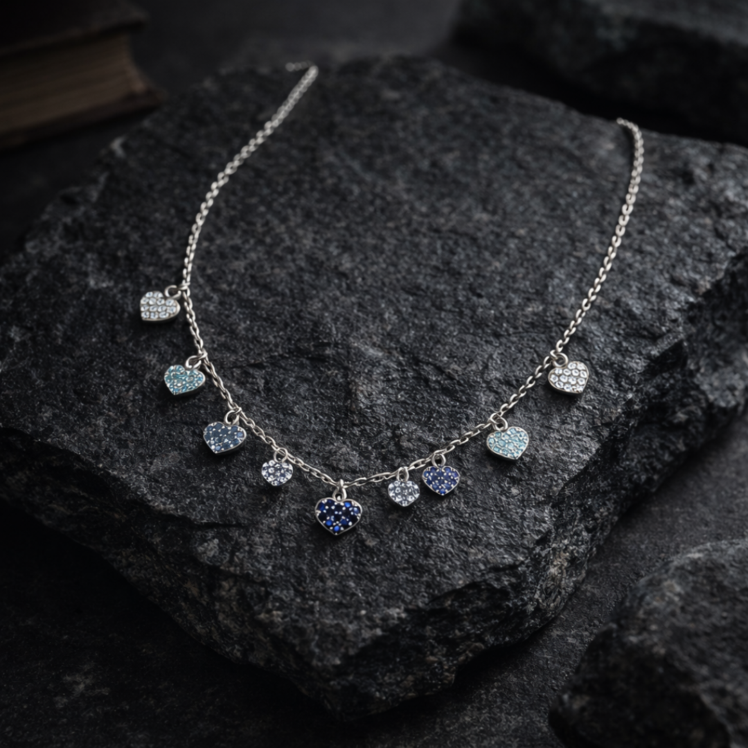 Be the first to review “Blue Gradient Heart Charm Drop Necklace – 92.5 Sterling Silver Multi-Heart Choker with Ombre Crystals” Cancel reply