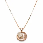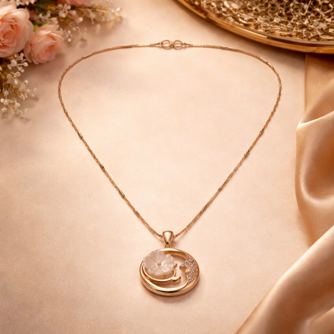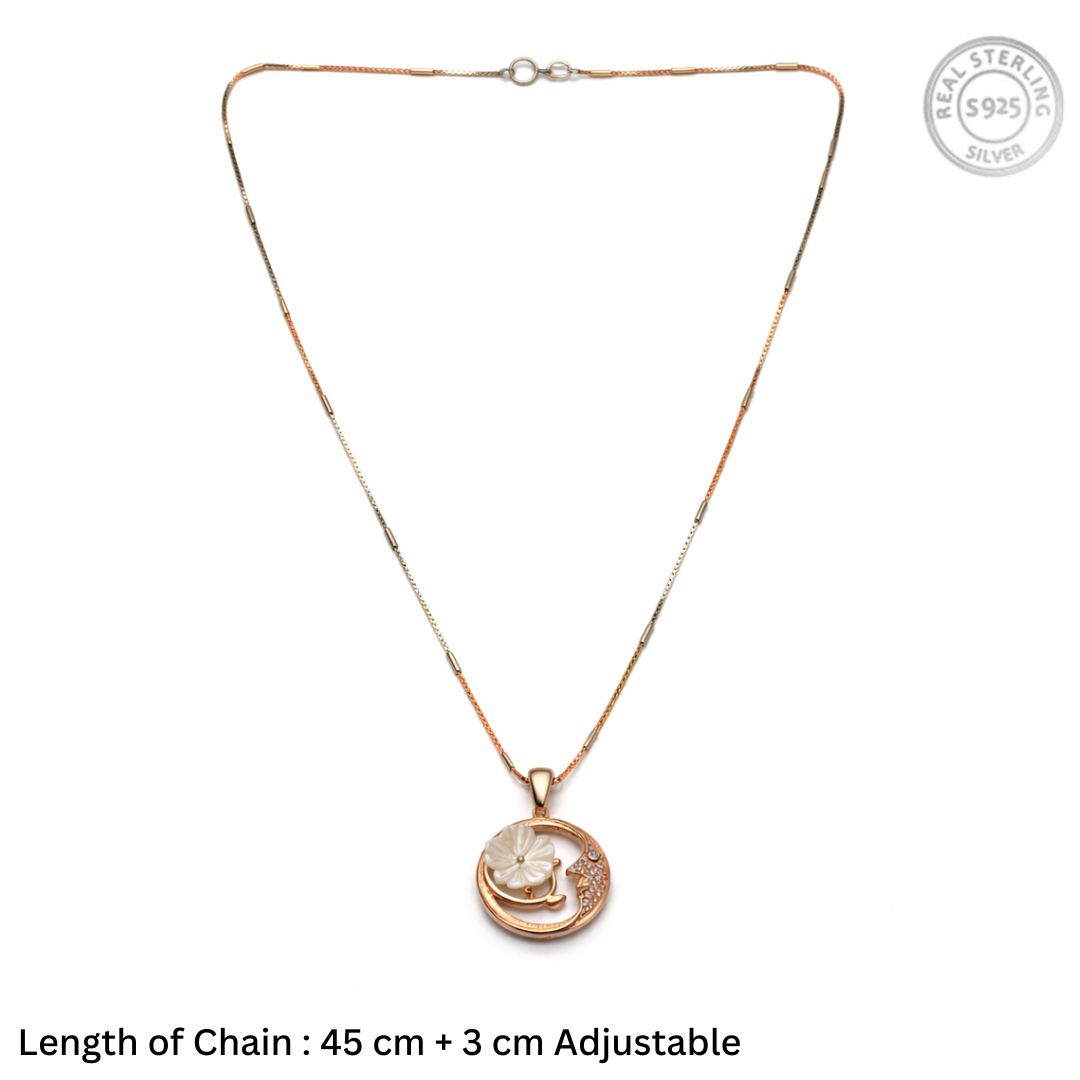 Celestial Mother of Pearl Flower & Moon Pendant Necklace – Rose Gold Plated 92.5 Sterling Silver Crescent Moon Charm