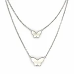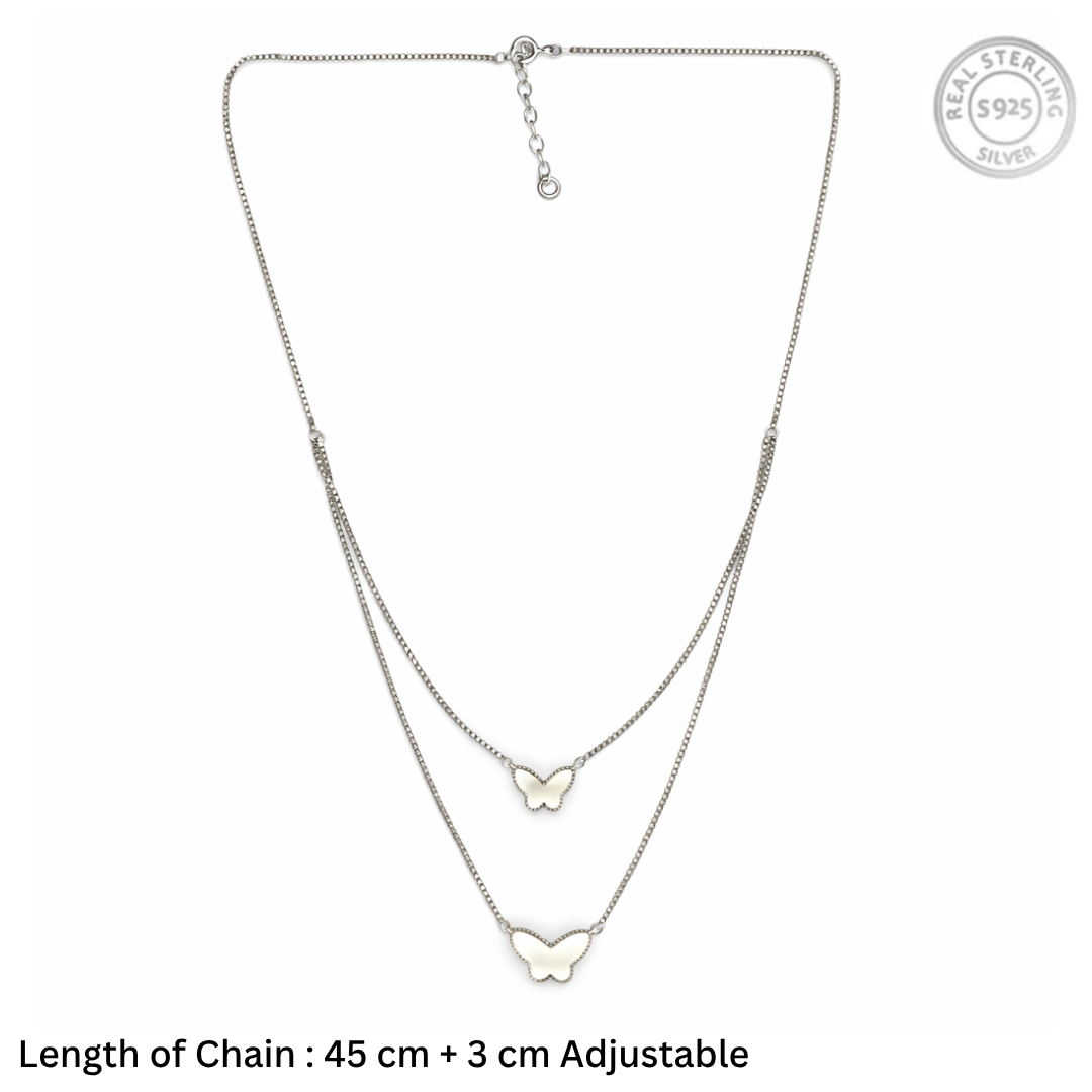 Dainty Mother of Pearl Butterfly Layered Necklace – 92.5 Sterling Silver Double Chain Butterfly Choker