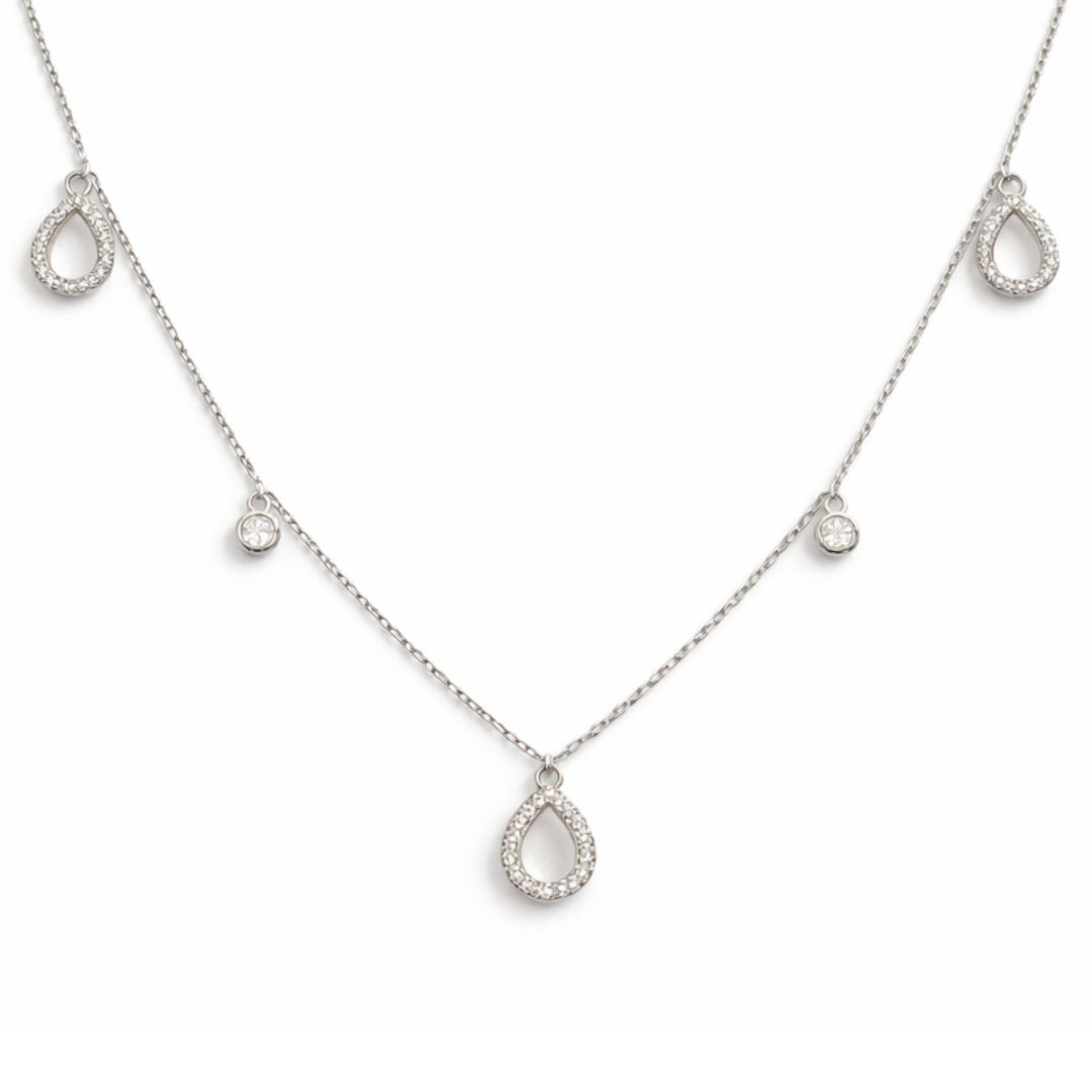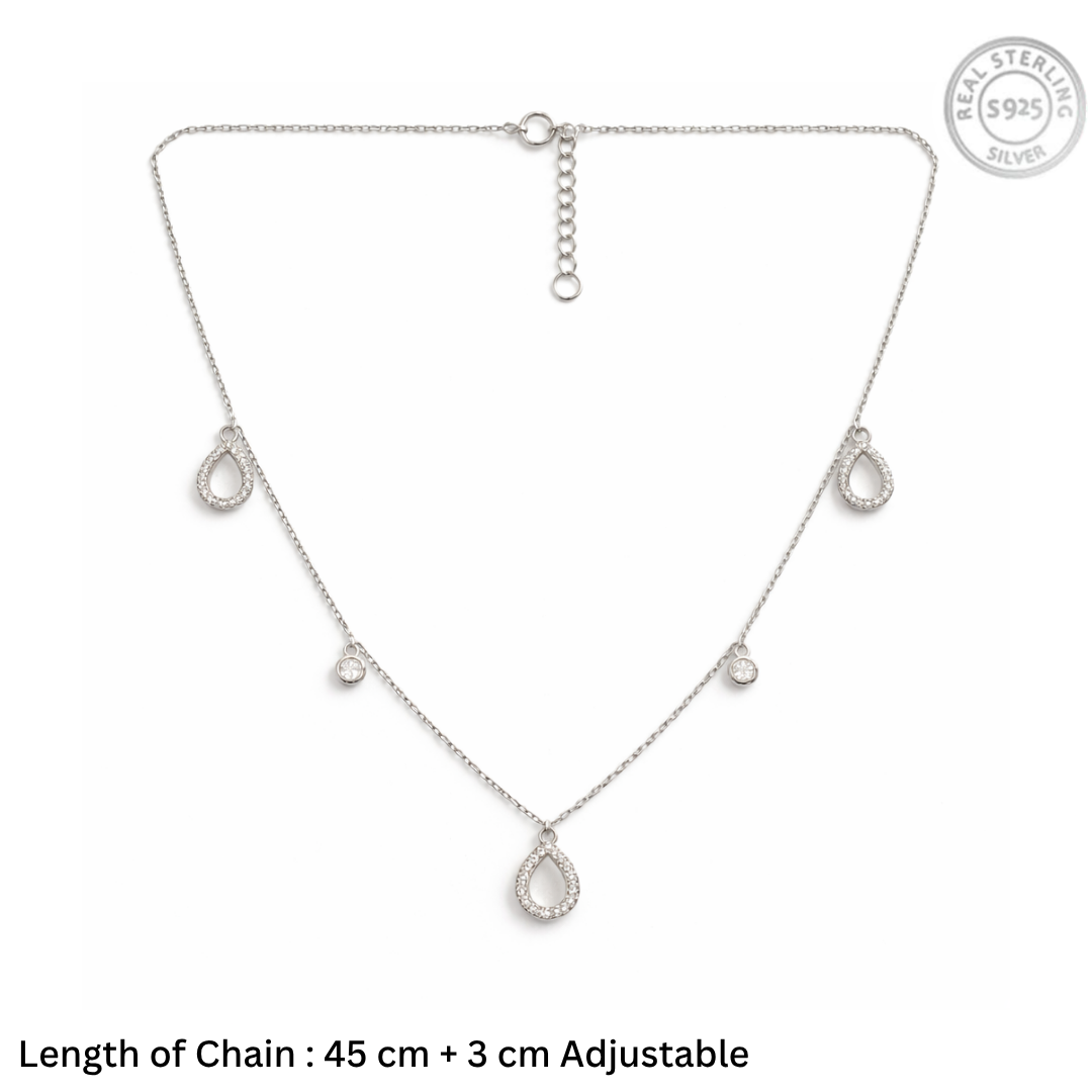 Dainty Pavé Teardrop Station Necklace – 92.5 Sterling Silver Multi-Charm Choker with Shimmering Crystal Accents