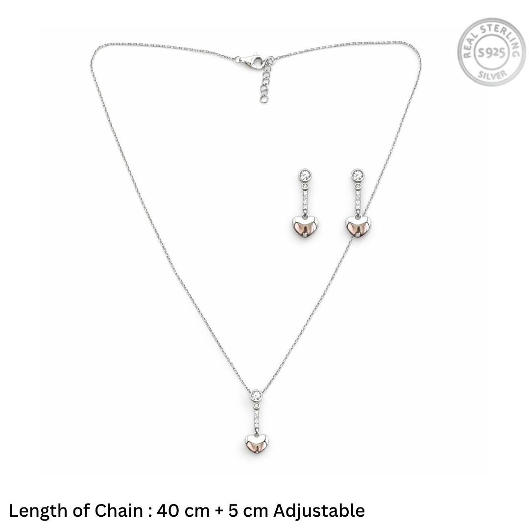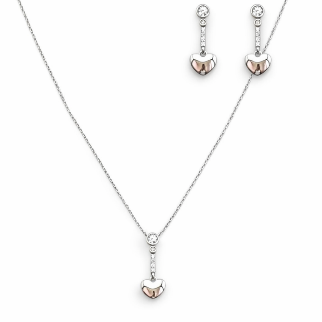 Dainty Two-Tone Heart Drop Jewelry Set – 92.5 Sterling Silver Necklace & Earrings with Sparkling Crystal Accents