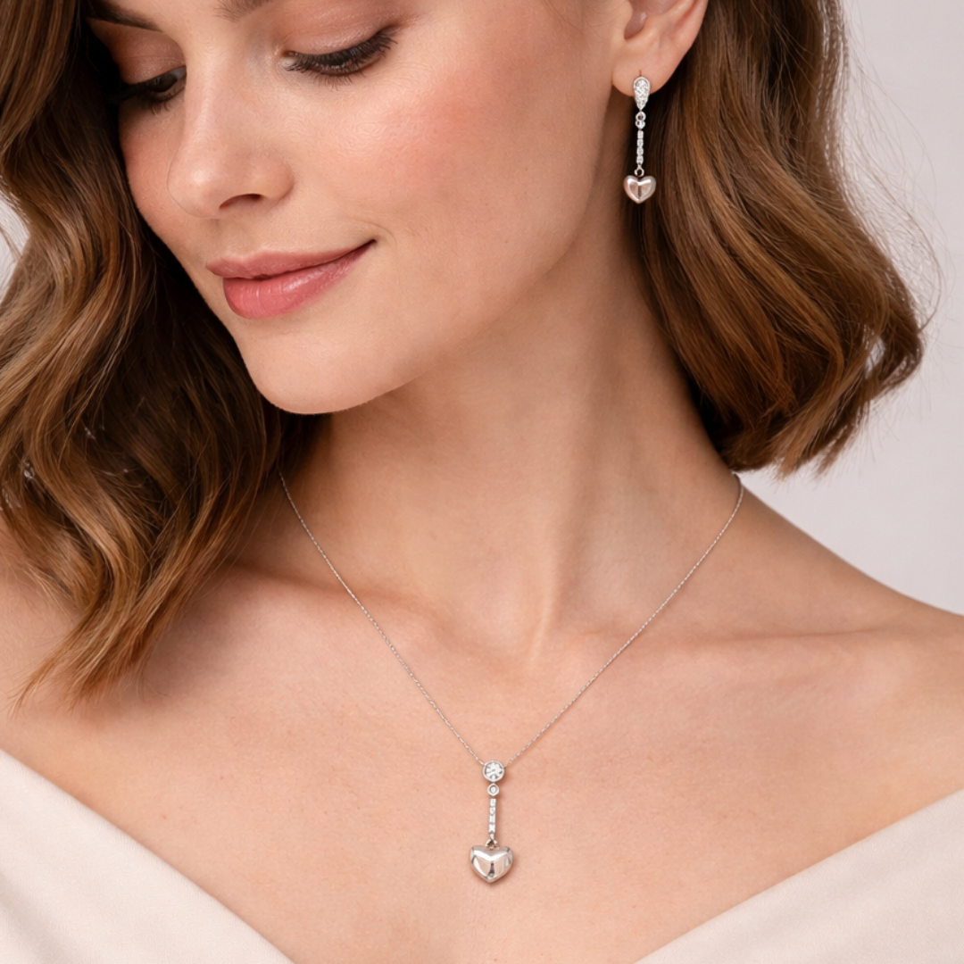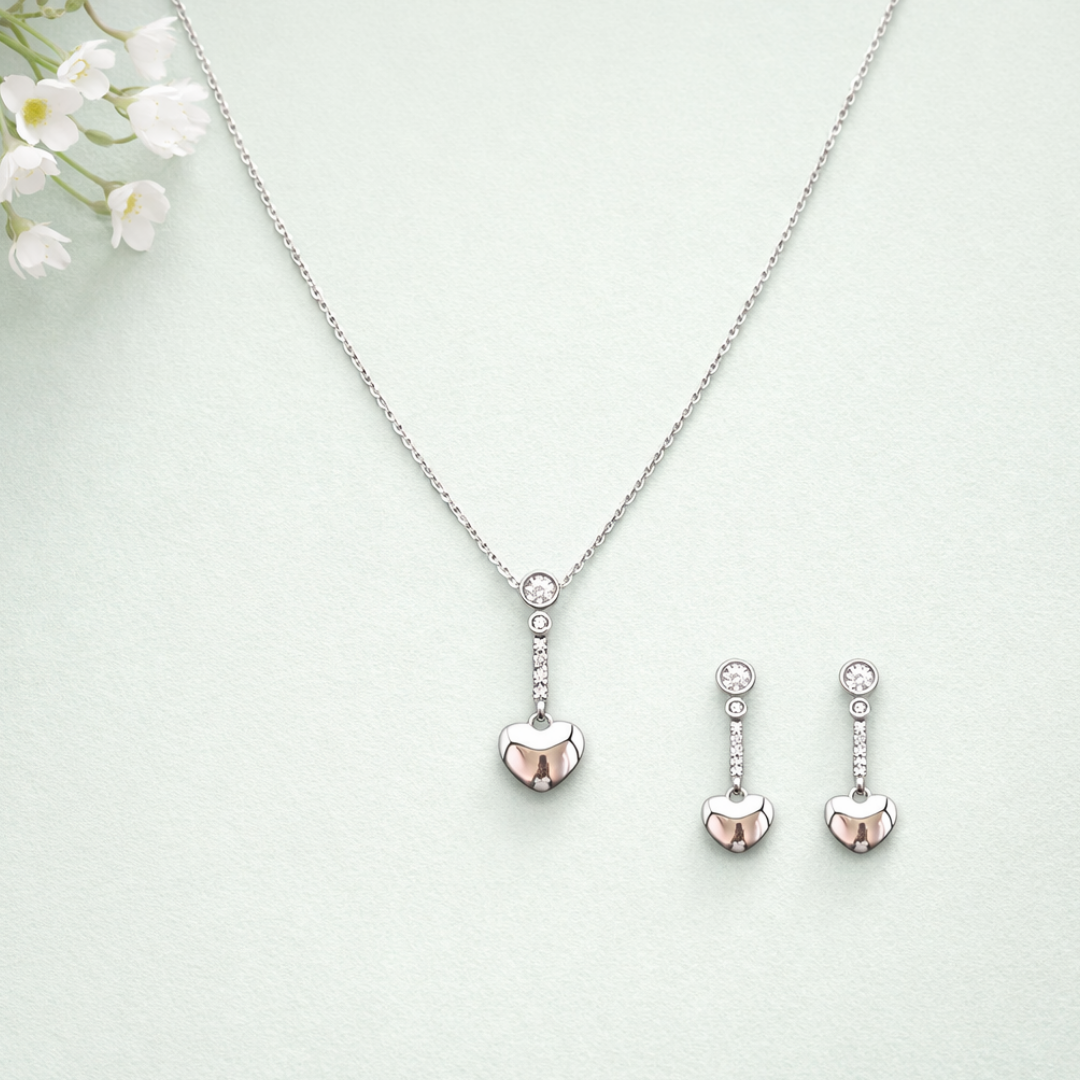 Crafted from authentic 92.5 Sterling Silver, this set offers a clean, modern aesthetic that effortlessly blends classic romance with contemporary style. Its lightweight design makes it the perfect choice for adding a refined sparkle to your daily look or finishing off an elegant evening ensemble.