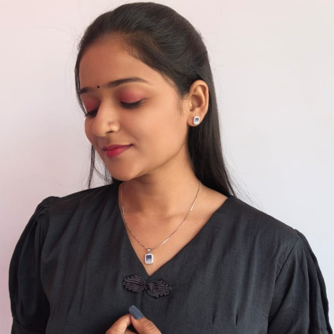Sapphire Blue Teardrop Tassel Jewelry Set – 92.5 Sterling Silver Square Halo Lariat Necklace & Dangle Earrings ₹7,123.00 Original price was: ₹7,123.00.₹5,699.00Current price is: ₹5,699.00.