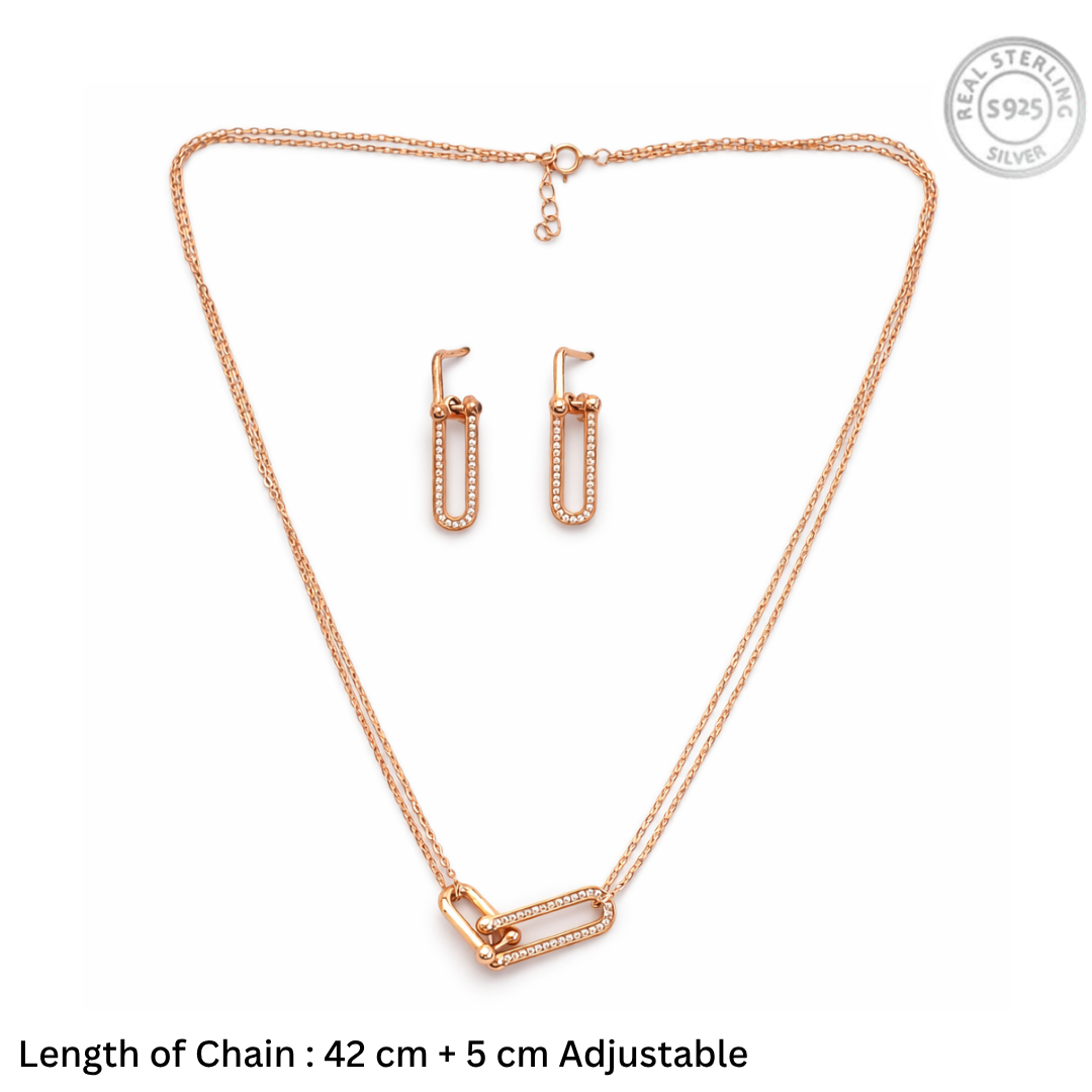 Industrial Chic Link Necklace & Earrings Set – Rose Gold Plated 92.5 Sterling Silver Pavé U-Link Jewelry Set