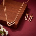 Crafted from premium 92.5 Sterling Silver, this set offers a sophisticated, high-fashion look that bridges the gap between edgy and elegant. The double-strand chain adds a layered, contemporary feel, making it the perfect statement piece for the modern woman.