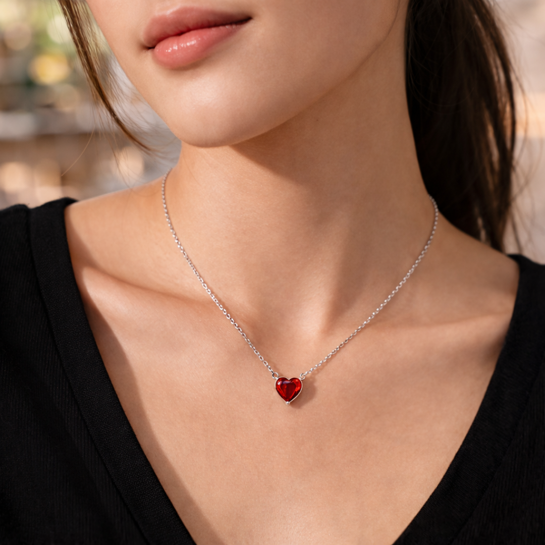 Add a romantic touch to your look with this elegant Red Heart Crystal Pendant Necklace. Designed with a sparkling heart-shaped red crystal, this piece beautifully symbolizes love, passion, and timeless style.
