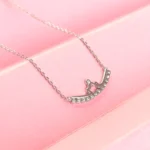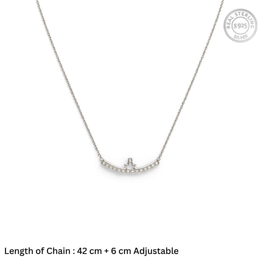 Silver Sparkling Crown Curved Bar Necklace 92.5 Sterling Silver for Women