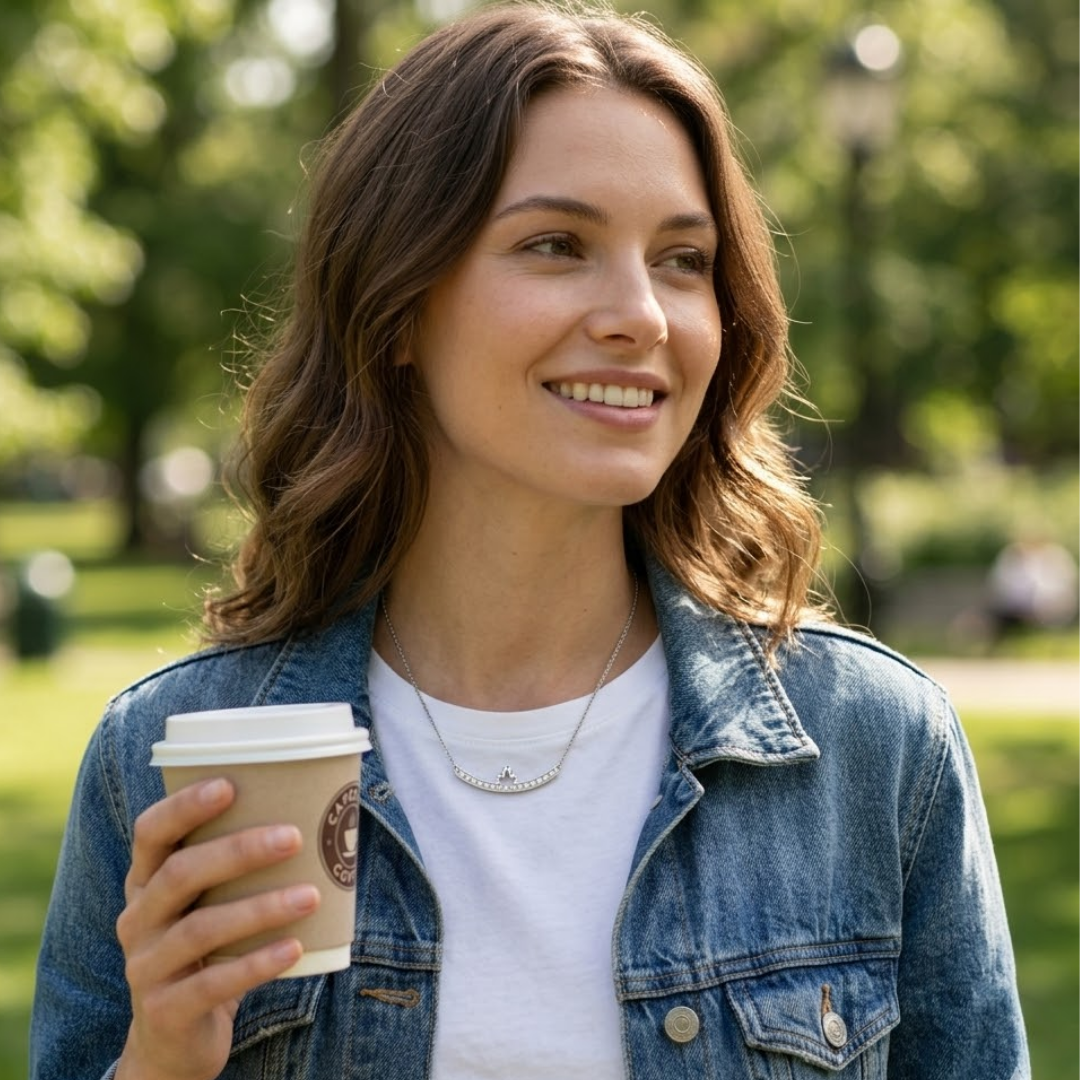 This elegant piece features a gently curved horizontal bar accented with a delicate, stylized tiara motif in the center, all beautifully lined with shimmering, clear stones. Crafted from premium, real S92.5 sterling silver, this dainty necklace offers a radiant, tarnish-resistant finish that elevates any outfit—whether you are dressing down in a casual denim jacket or dressing up for a night out. Designed for perfect layering and comfortable everyday wear, the chain measures 42 cm with a convenient 6 cm adjustable extender to suit any neckline.