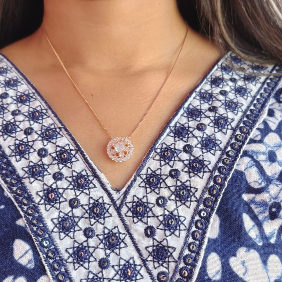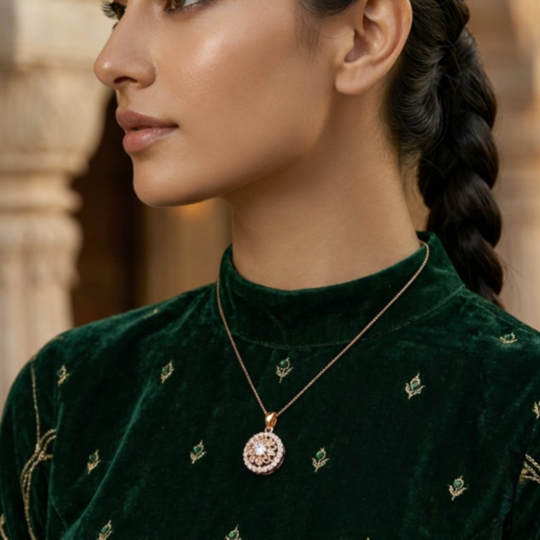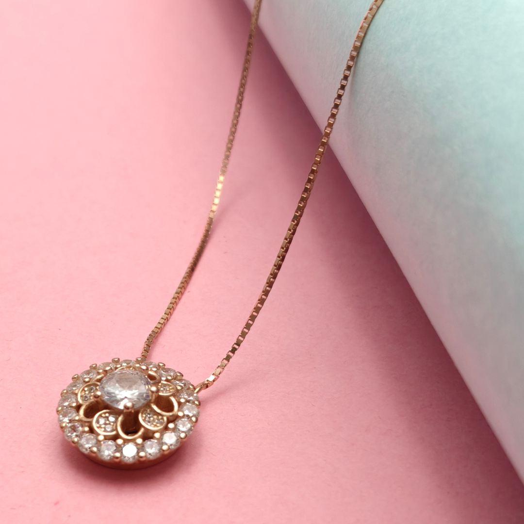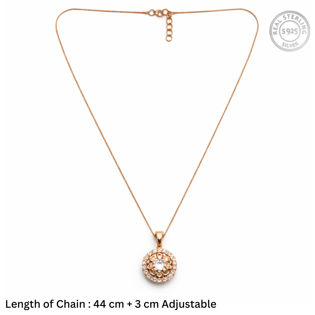 Crafted from high-quality 92.5 Sterling Silver and finished in a warm, romantic rose gold plating, this necklace is designed for the woman who loves jewelry with depth, character, and sophisticated sparkle.
