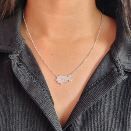 Interlocked Puzzle Piece Heart Necklace in 92.5 Sterling Silver