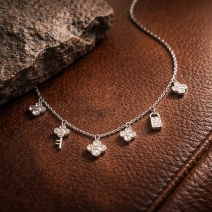 Golden Crystal Drop Pendant Necklace for Women 92.5 Silver